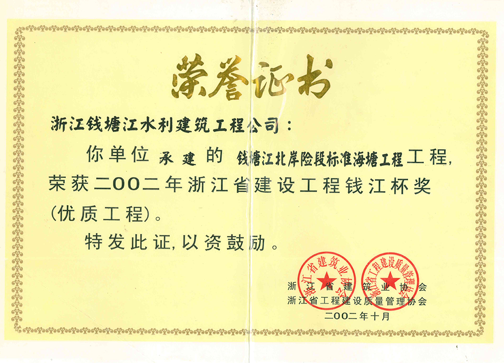 榮譽證書2002錢江杯獎