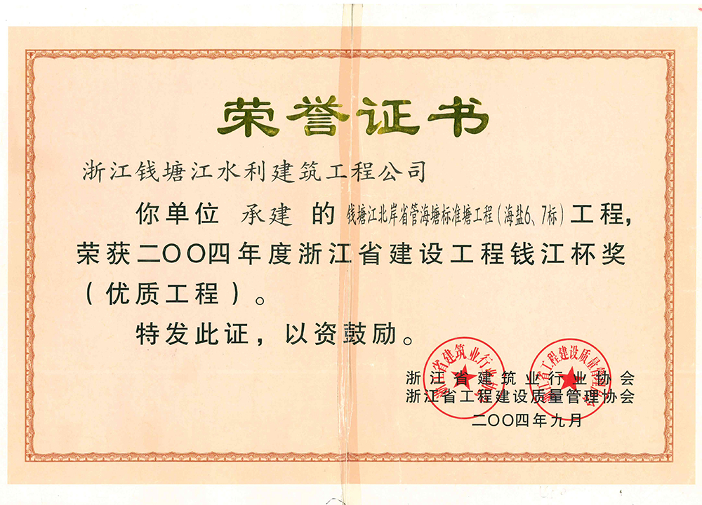 榮譽證書2004錢江杯獎