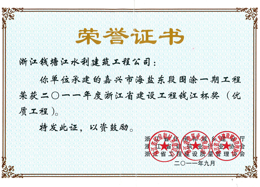 榮譽證書2011錢江杯獎