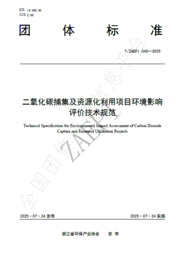 2025年7月24日,由浙江省環(huán)保集團(tuán)生態(tài)環(huán)保研究院牽頭制定的《二氧化碳捕集及資源化利用項(xiàng)目環(huán)境影響評價技術(shù)規(guī)范》(T/ZAEPI 045-2025)團(tuán)體標(biāo)準(zhǔn)正式發(fā)布并實(shí)施。該標(biāo)準(zhǔn)由浙江省環(huán)保產(chǎn)業(yè)協(xié)會歸口管理,聯(lián)合省內(nèi)多家環(huán)保領(lǐng)域骨干企業(yè)共同起草,填補(bǔ)了工業(yè)領(lǐng)域二氧化碳捕集及資源化利用項(xiàng)目環(huán)評技術(shù)規(guī)范的空白。